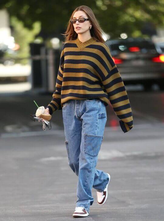 As we have already realized, Hailey Bieber is a fan of cargos, so she wears them with any shoes, and sneakers are no exception.