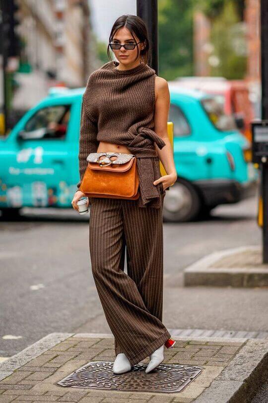 When to wear brown: in situations where you need to slow down and think a little. Brown is good for hiking, cozy evenings by the fireplace, walking. In everyday life, an abundance of brown can cause boredom and apathy, so it is better to dilute it with active shades.