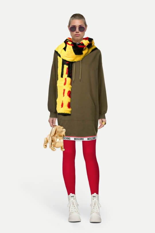Classics are classics, but no one canceled self-expression. In order to stand out in the crowd, designers of fashion brands produce bright hoodie dresses. The Bershka and Moschino brands have models in bright yellow with a large hood.
